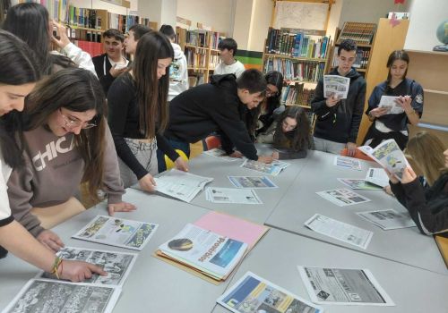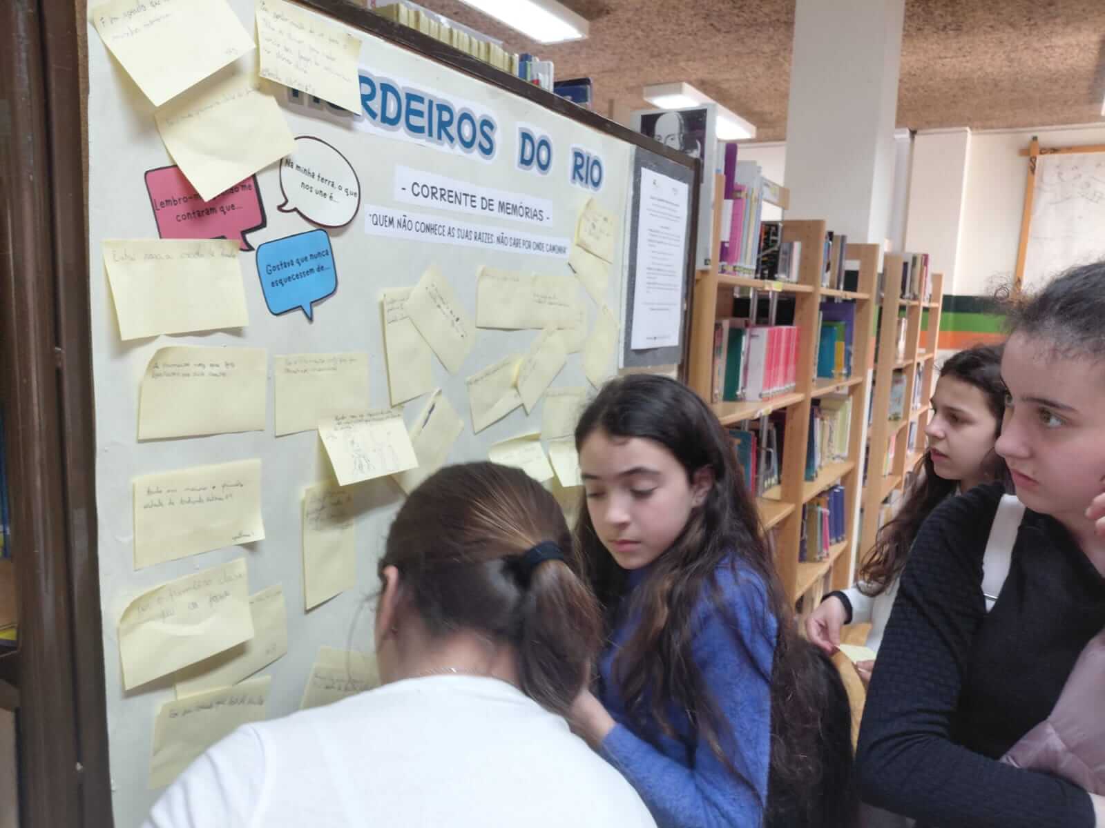 Num momento particularmente significativo, os participantes foram convidados a explorar edições antigas do jornal do Agrupamento, “Rio de Notícias”, onde muitos reconheceram familiares e conhecidos, estabelecendo uma ponte entre gerações e reforçando a continuidade da história coletiva.