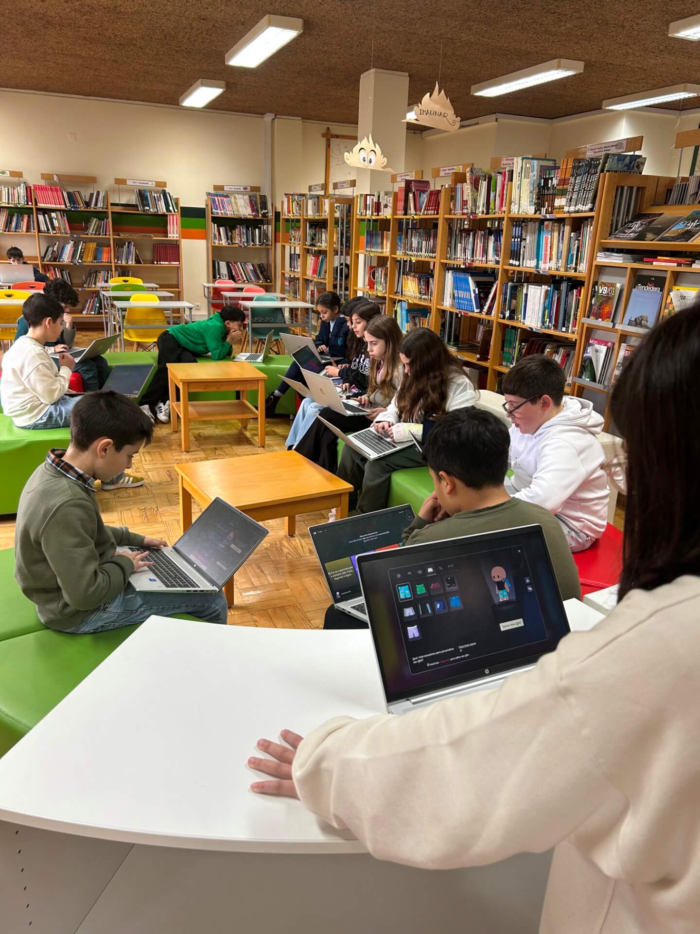 No 5.º ano, a sessão decorreu na Biblioteca Escolar, durante o tempo letivo da disciplina. Os alunos responderam a vinte questões centradas sobretudo no domínio da gramática, num ambiente que conciliou aprendizagem e componente lúdica.