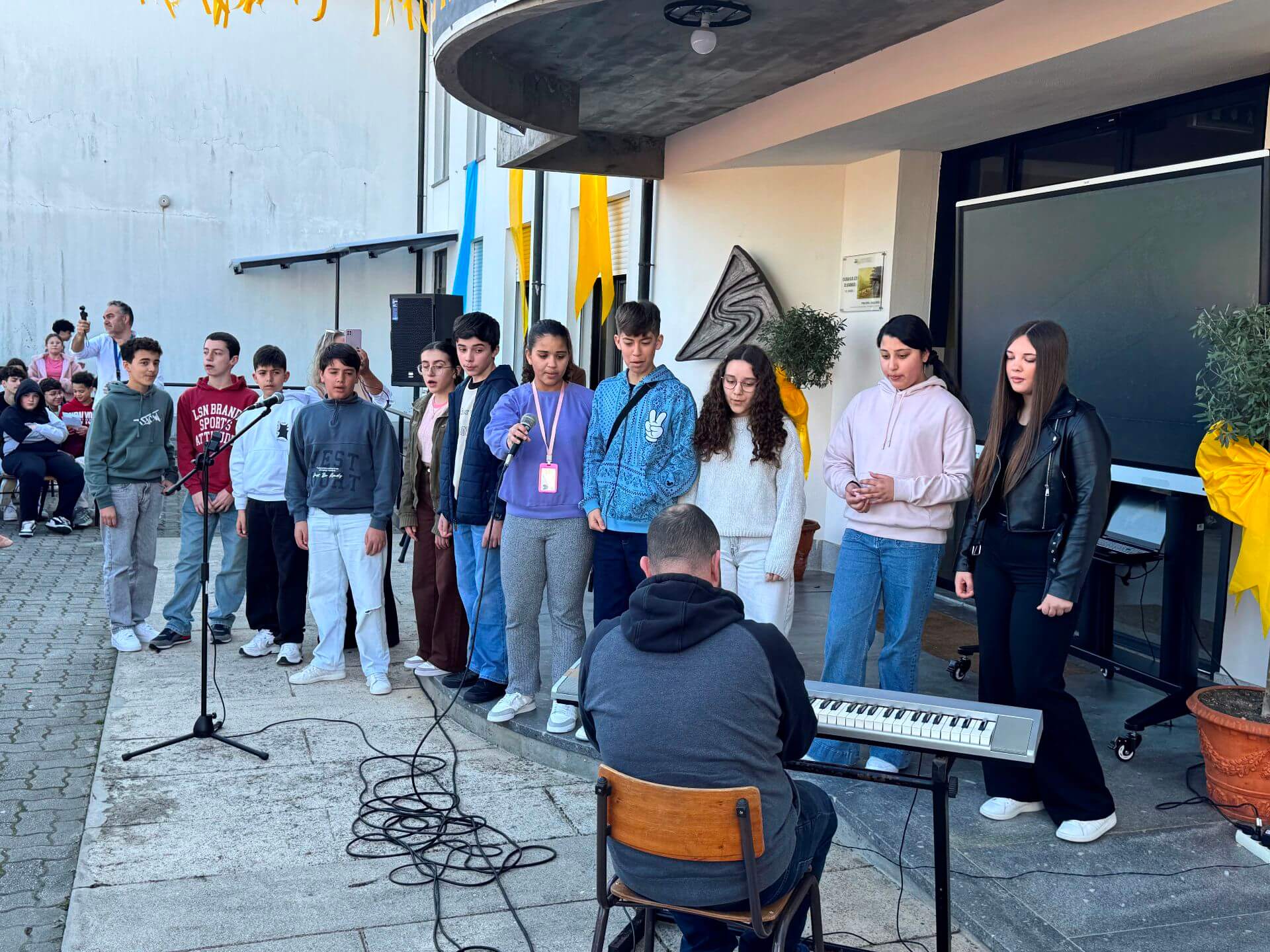 O momento solene foi enriquecido pela atuação do coro do 7.ºA (Ensino Articulado), que interpretou “The Moon”, de Andy Beck, sob a direção do professor César Freitas. Seguiram-se as intervenções do Diretor do Agrupamento e do Presidente da Câmara Municipal de Cinfães, que antecederam outro momento de particular significado: o hastear da Bandeira Verde. Este galardão do programa Eco-Escolas constitui o símbolo visível do trabalho desenvolvido por alunos, docentes e parceiros em prol da sustentabilidade ambiental.