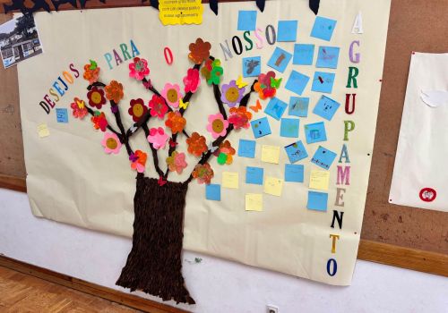 Após o Porto de Honra, que proporcionou um momento de convívio e partilha, as salas temáticas abriram portas ao conhecimento e à criatividade. Os alunos e visitantes tiveram a oportunidade de explorar projetos de inovação digital, como “Explorar o Mundo com a IA” (Sala LED), atividades ligadas às artes - como o Ateliê de Artes Visuais, a Oficina de Origamis e o criativo Cadavre Exquis -, bem como desafios científicos e matemáticos. Houve ainda espaço para a expressão individual e coletiva, com iniciativas como o Mural dos Desejos e a construção colaborativa do logótipo do Agrupamento, entre outras propostas.