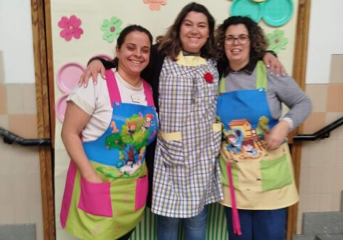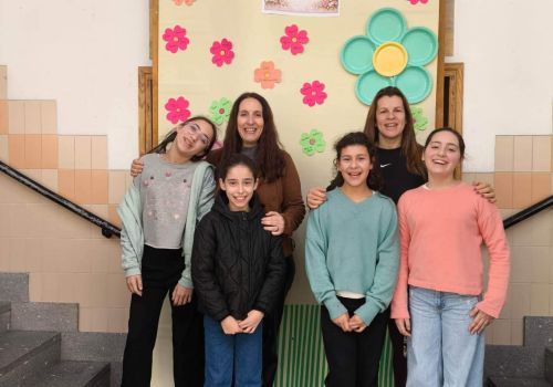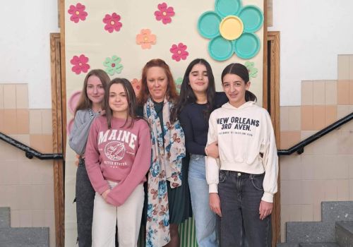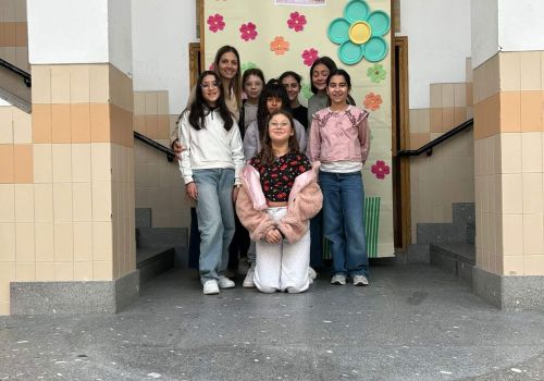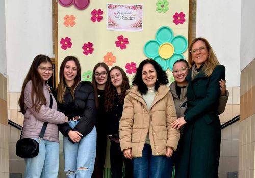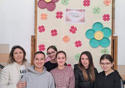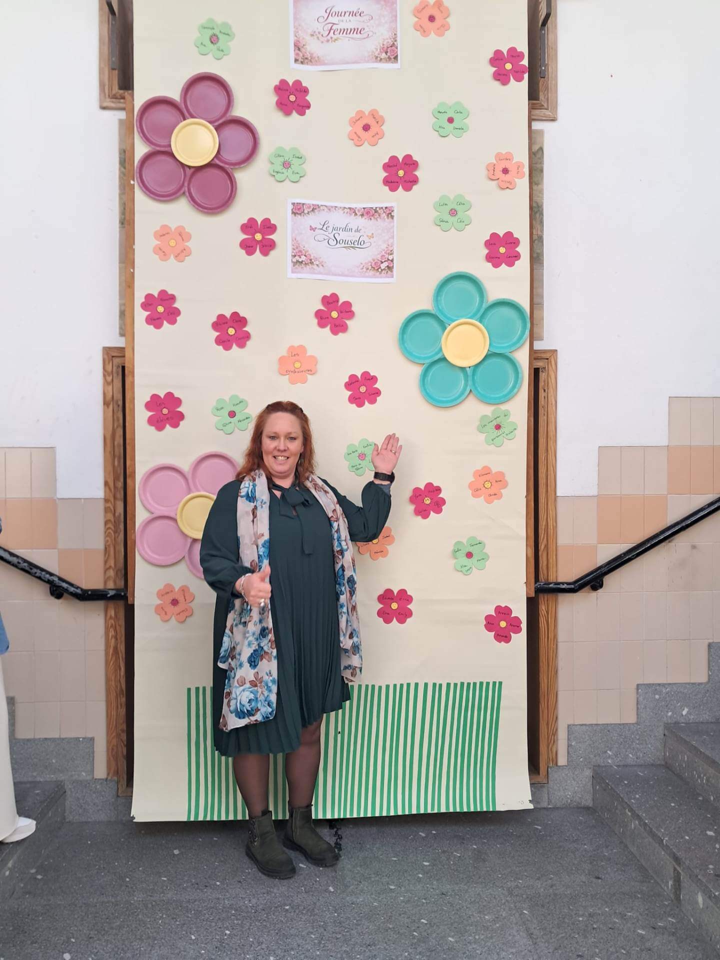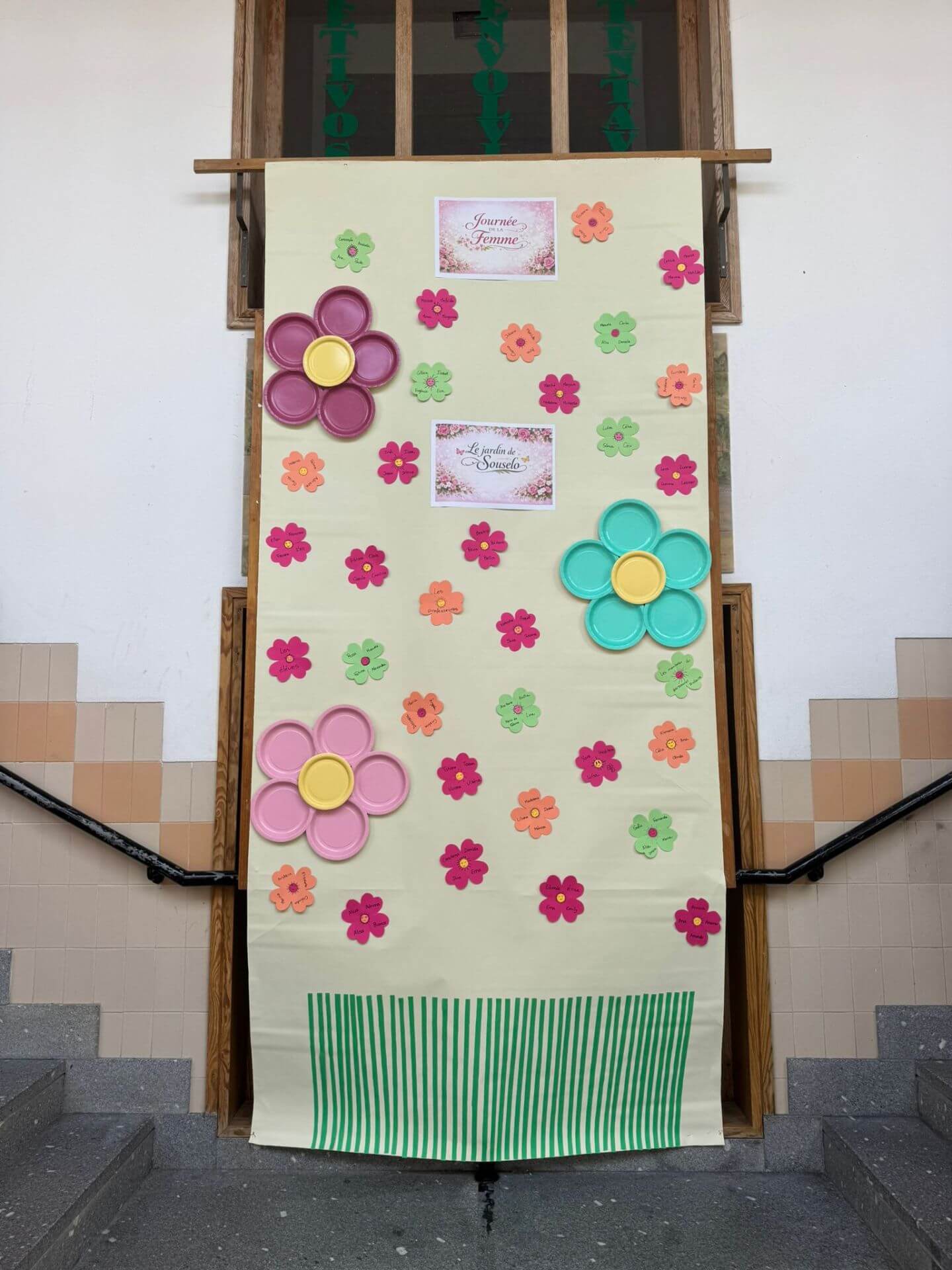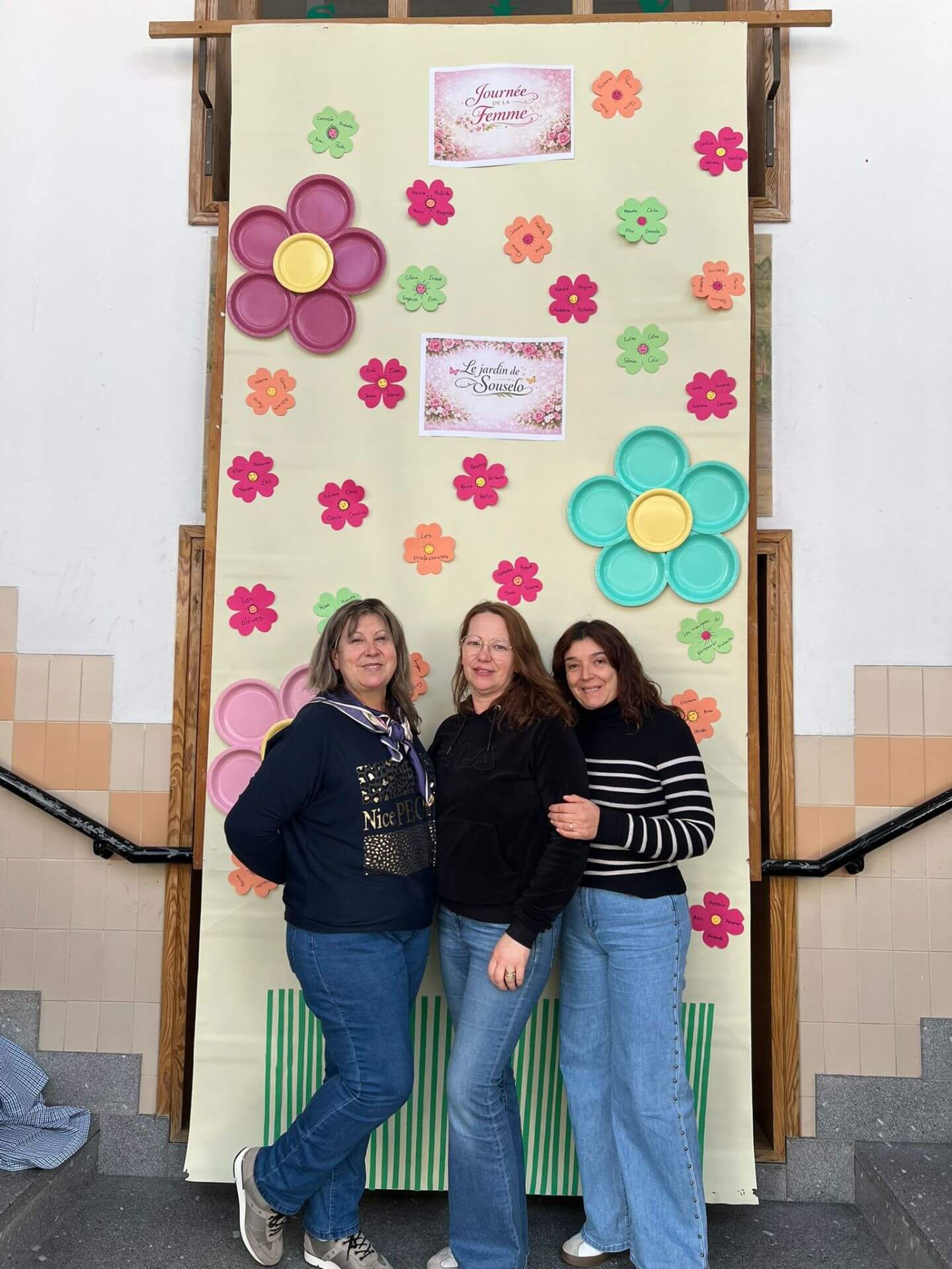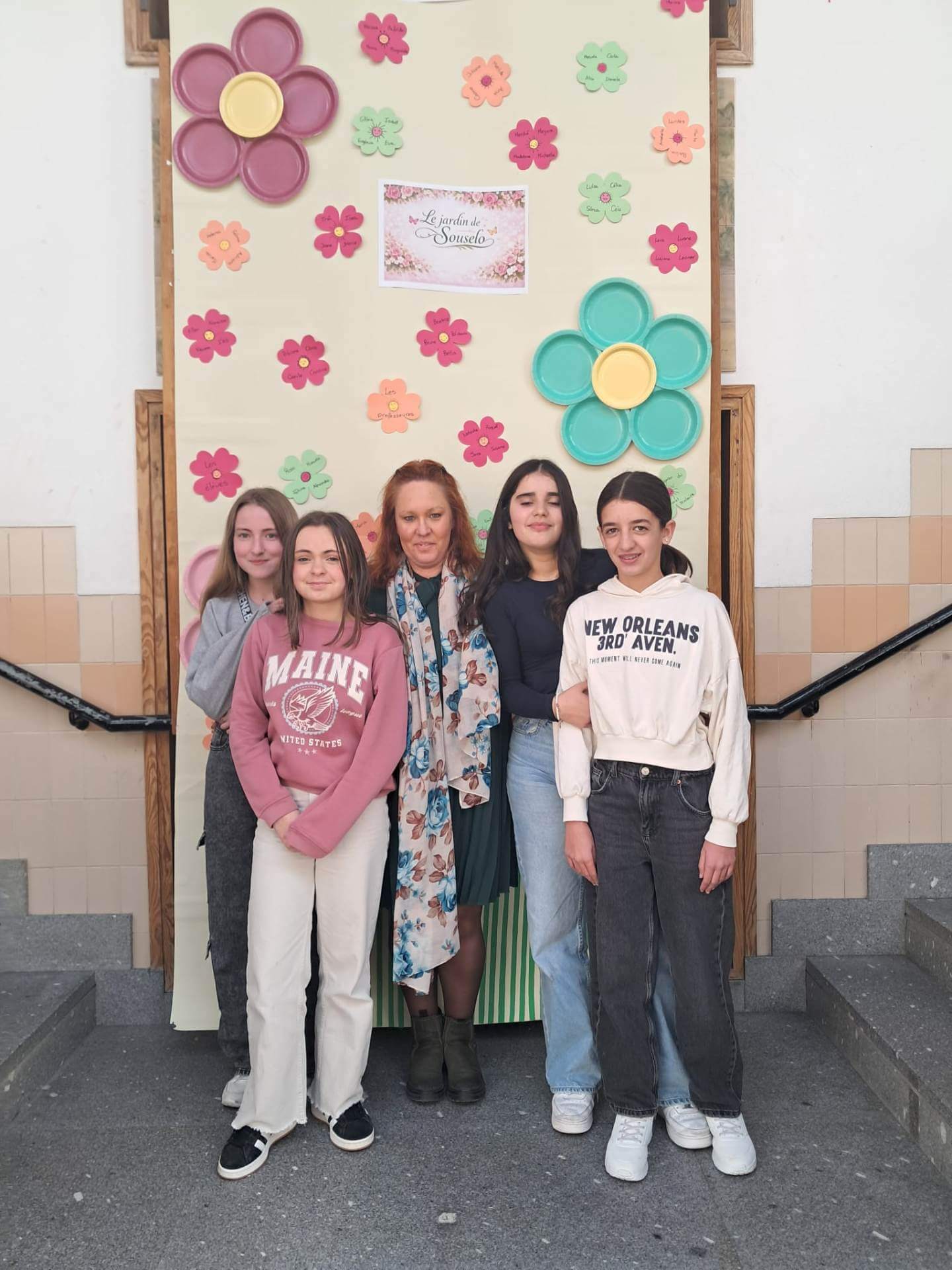 No átrio da escola foi preparado um cenário decorativo com flores coloridas e a expressão francesa “Le jardin de Souselo”, criando um espaço simbólico dedicado à celebração das mulheres. Este cenário, criado por todos as turmas do terceiro ciclo, permaneceu exposto durante vários dias, convidando alunas, professoras e assistentes a registarem o momento com fotografias em frente ao painel. 🌸
