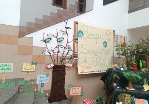 Em janeiro, após o regresso às aulas, no átrio da escola, os trabalhos das três turmas deram origem ao fantástico “Bosque dos Sussurros de Papel”, onde foram integradas mensagens de sensibilização ambiental e boas práticas para a proteção das florestas.