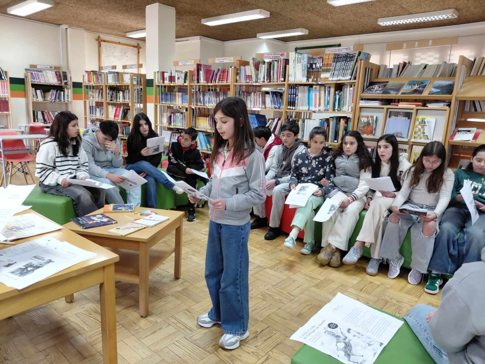Os alunos selecionados na 1.ª fase, realizada em sala de aula pelas professoras de Português, mostraram grande coragem e expressividade ao dar voz às palavras. Este momento revelou não apenas o talento de cada participante, mas também a capacidade de comunicar e encantar através dos livros.