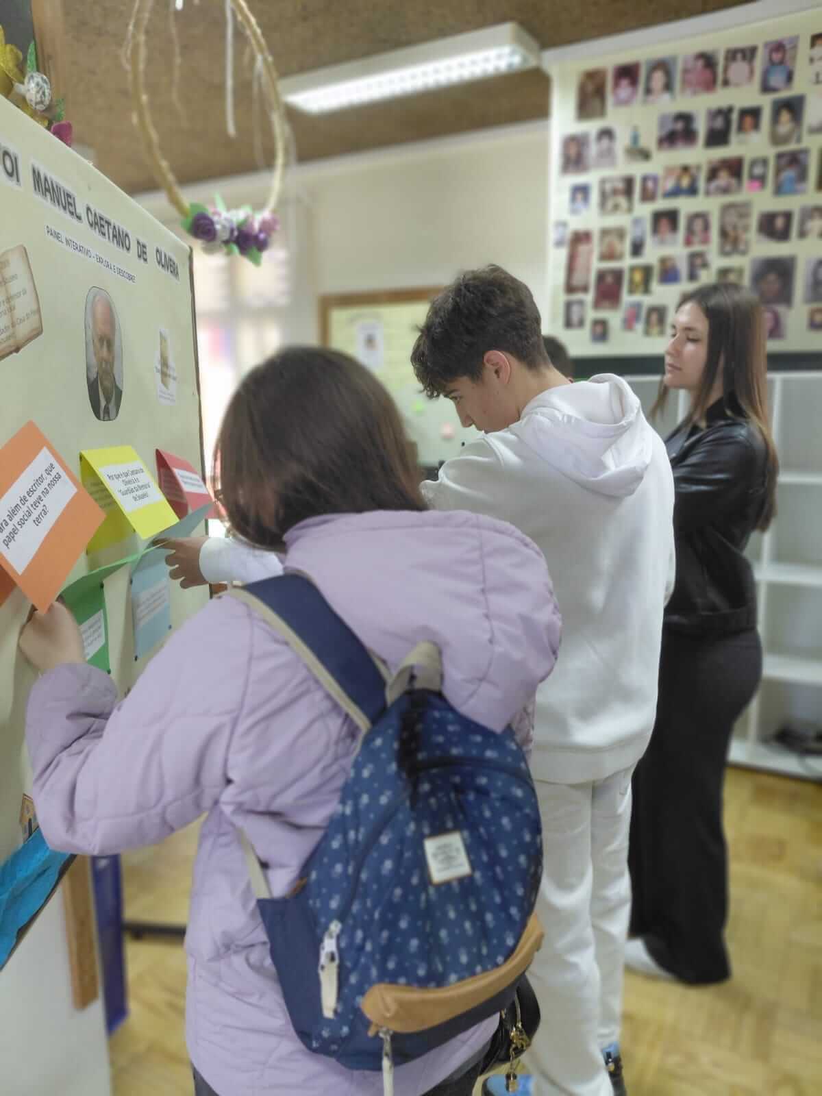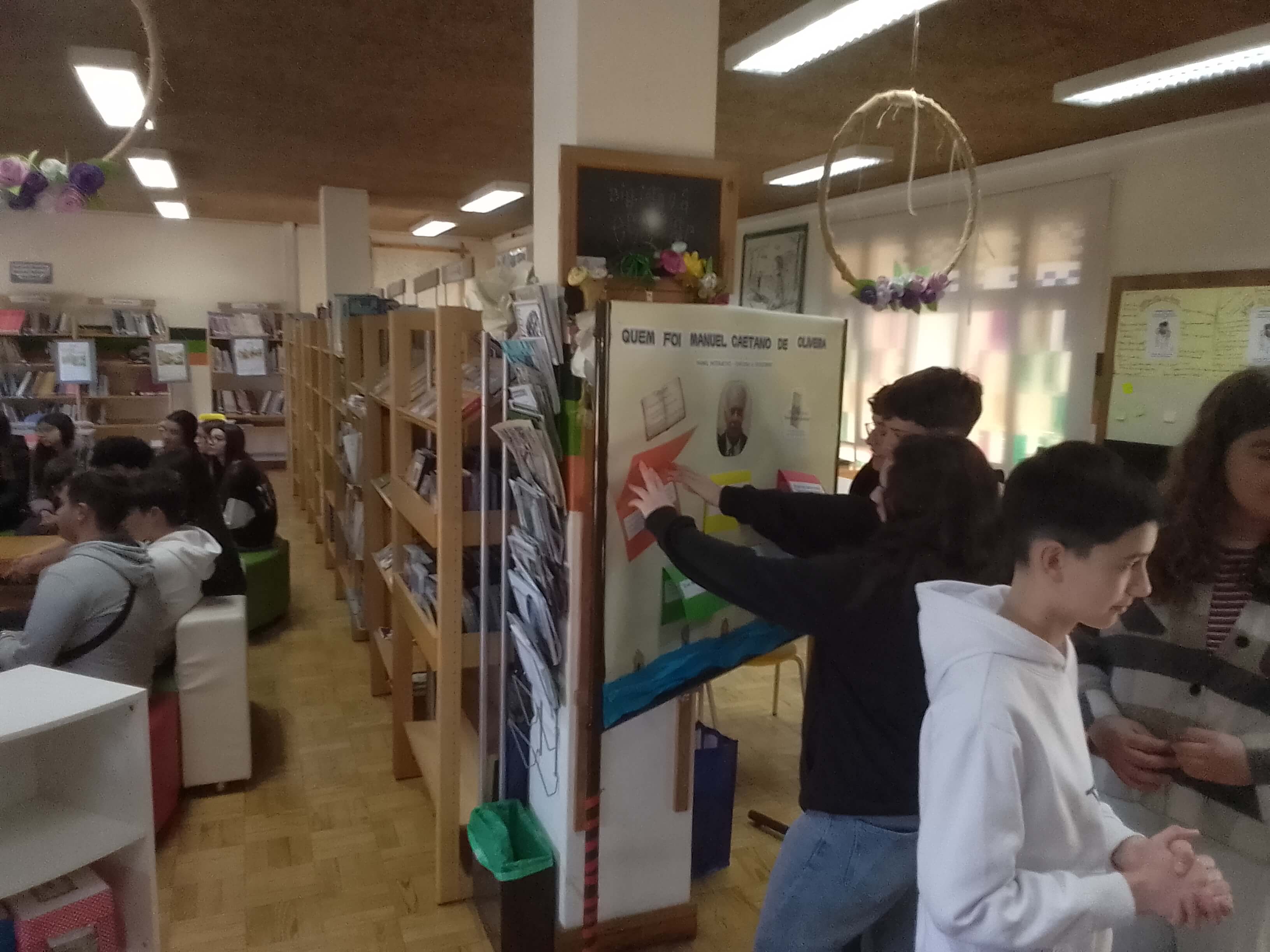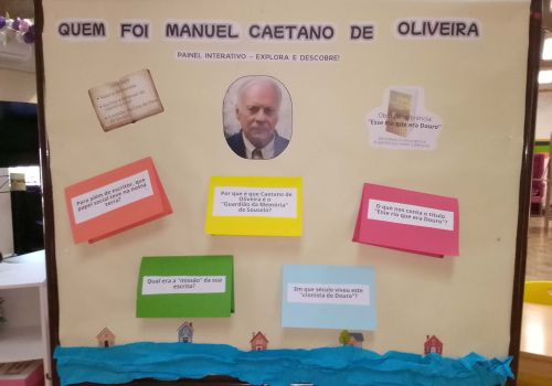 A experiência iniciou-se com a exploração de um mural biográfico interativo dedicado a Manuel Caetano de Oliveira, patrono da Biblioteca e reconhecido como um verdadeiro guardião das memórias da nossa terra.