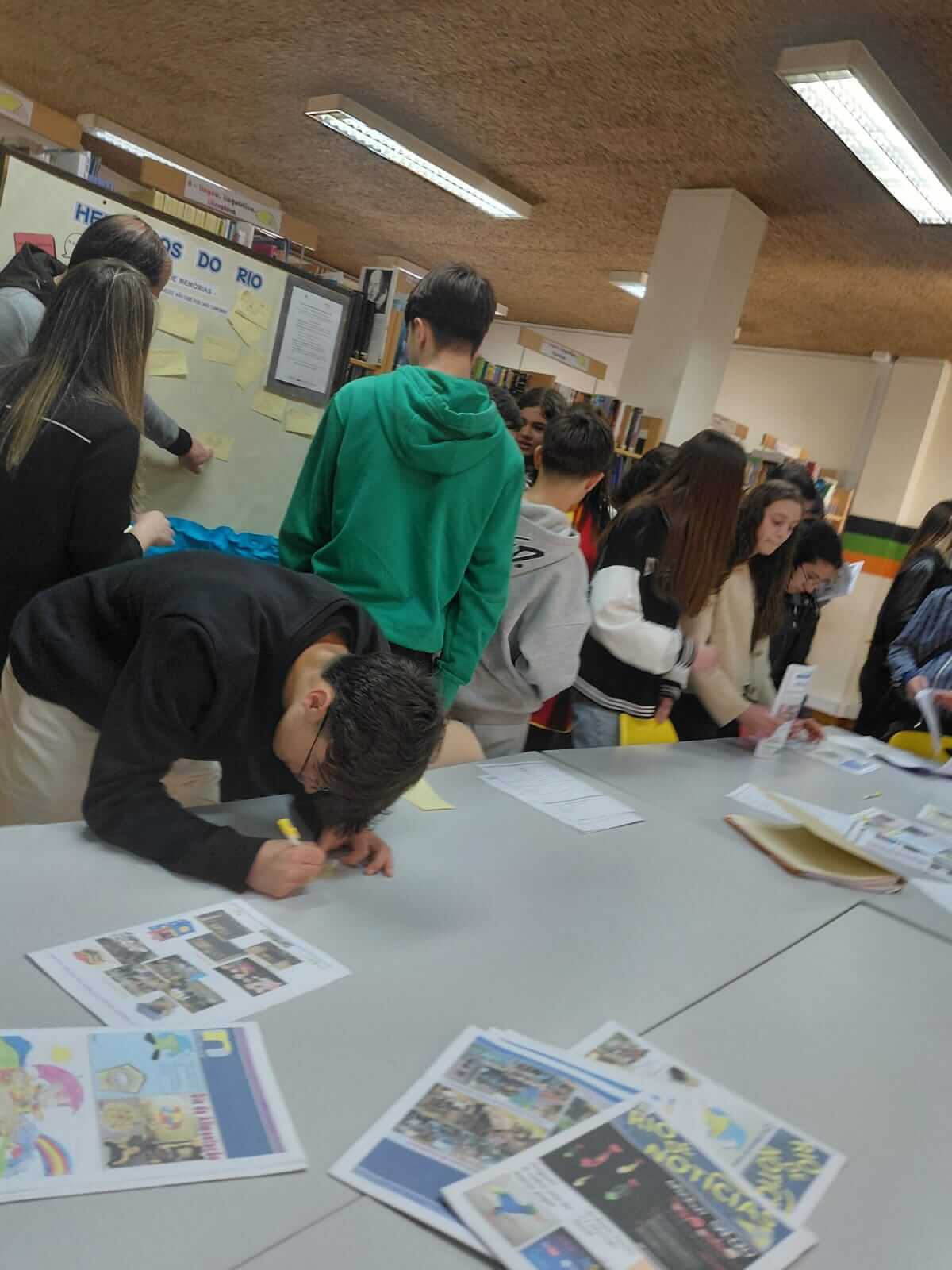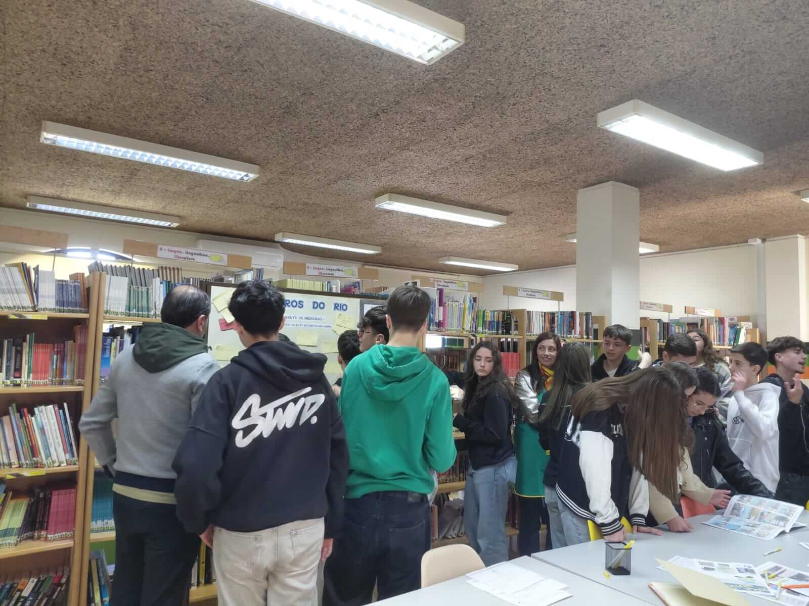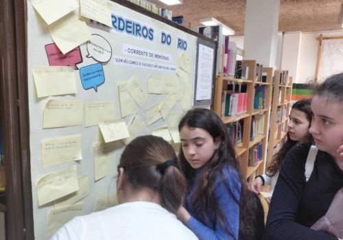 Num momento particularmente significativo, os participantes foram convidados a explorar edições antigas do jornal do Agrupamento, “Rio de Notícias”, onde muitos reconheceram familiares e conhecidos, estabelecendo uma ponte entre gerações e reforçando a continuidade da história coletiva.