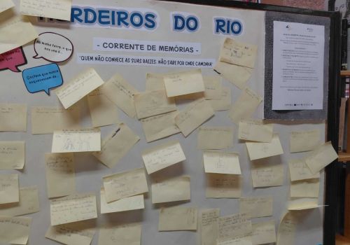 Para encerrar, cada participante foi desafiado a escrever uma memória vivida em Souselo (na escola ou na comunidade) que gostasse de nunca esquecer e partilhar. Surgiram mensagens simples, mas profundamente marcantes, como: