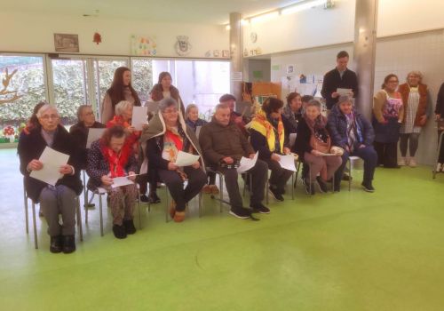 Durante a manhã, a escola teve o prazer de receber os utentes da Associação de Solidariedade Social de Souselo, num momento muito especial de convívio e partilha. Alunos e idosos uniram vozes para cantar as Janeiras, celebrando juntos esta tradição popular e promovendo o respeito e a proximidade entre diferentes gerações.