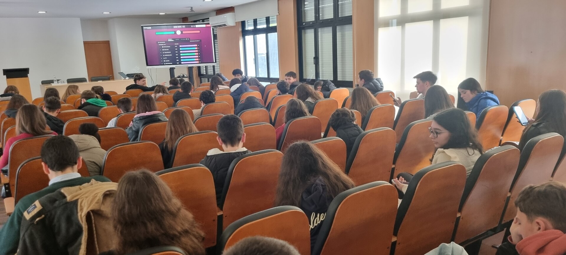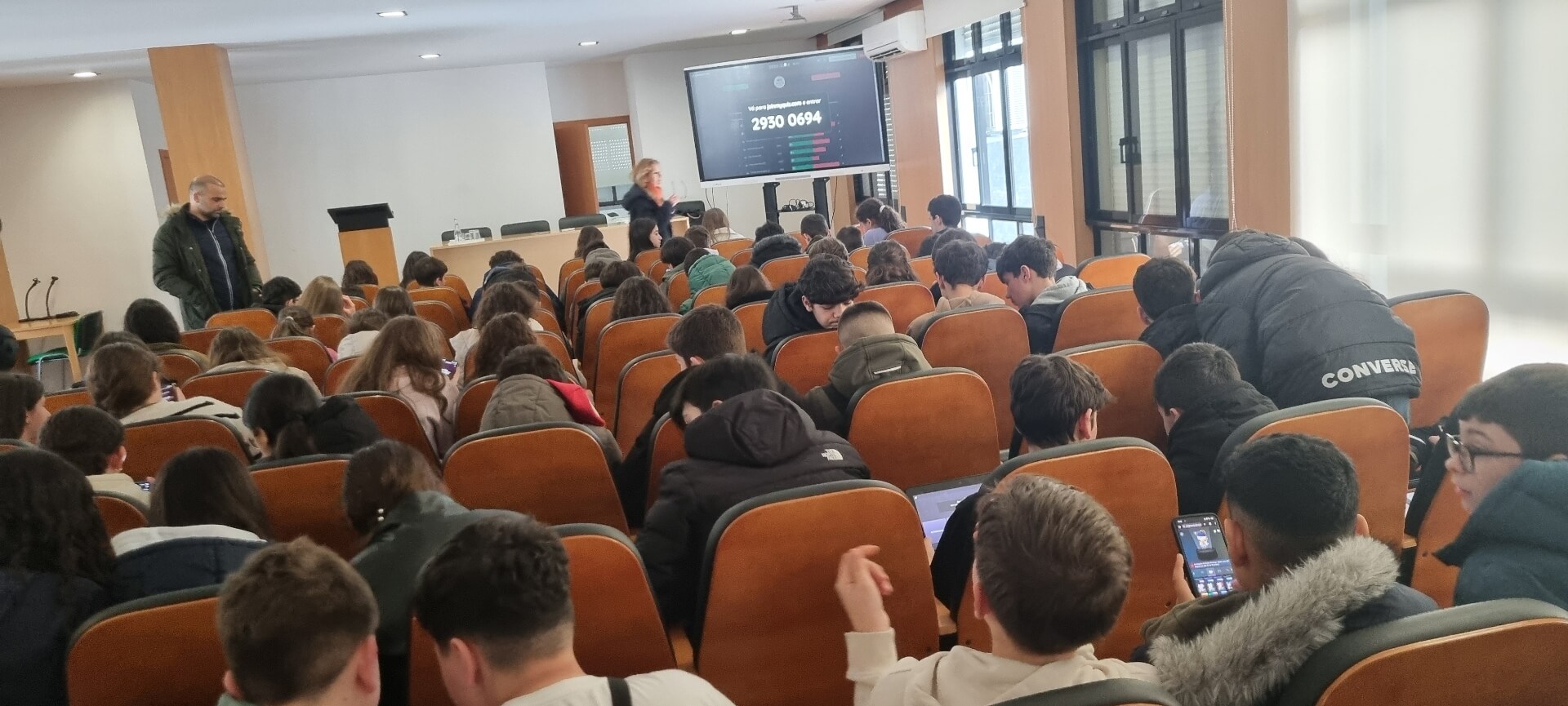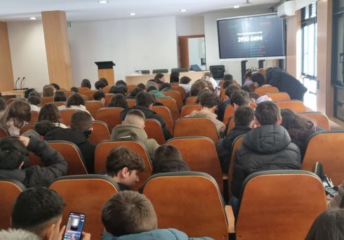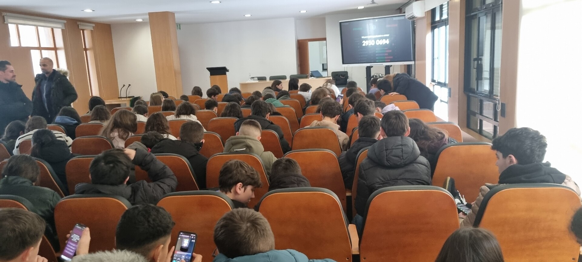 Já no 3.º ciclo, a iniciativa teve lugar no auditório da escola, durante a hora de Oferta Complementar, entre as 12h20 e as 13h10. Atendendo à capacidade do espaço, participaram, num primeiro momento, os alunos dos 7.º e 8.º anos, seguindo-se posteriormente os do 9.º ano, todos acompanhados pelos docentes responsáveis nesse tempo letivo.