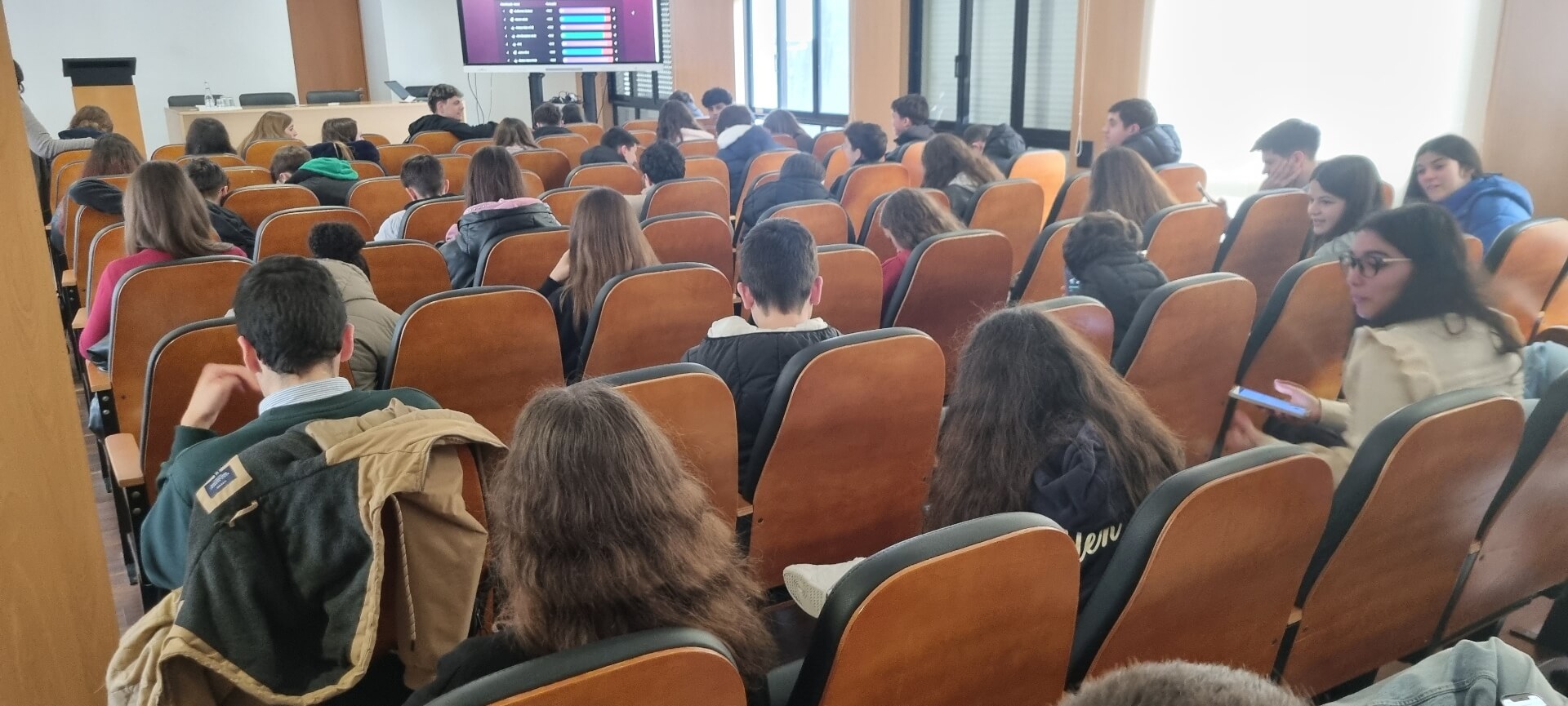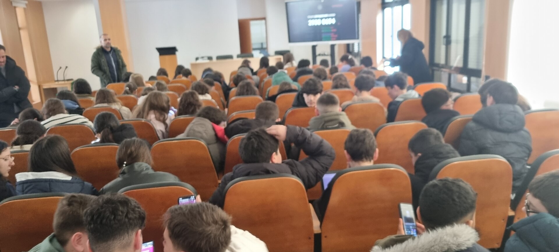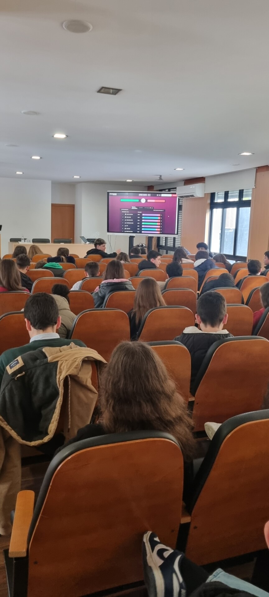 Já no 3.º ciclo, a iniciativa teve lugar no auditório da escola, durante a hora de Oferta Complementar, entre as 12h20 e as 13h10. Atendendo à capacidade do espaço, participaram, num primeiro momento, os alunos dos 7.º e 8.º anos, seguindo-se posteriormente os do 9.º ano, todos acompanhados pelos docentes responsáveis nesse tempo letivo.