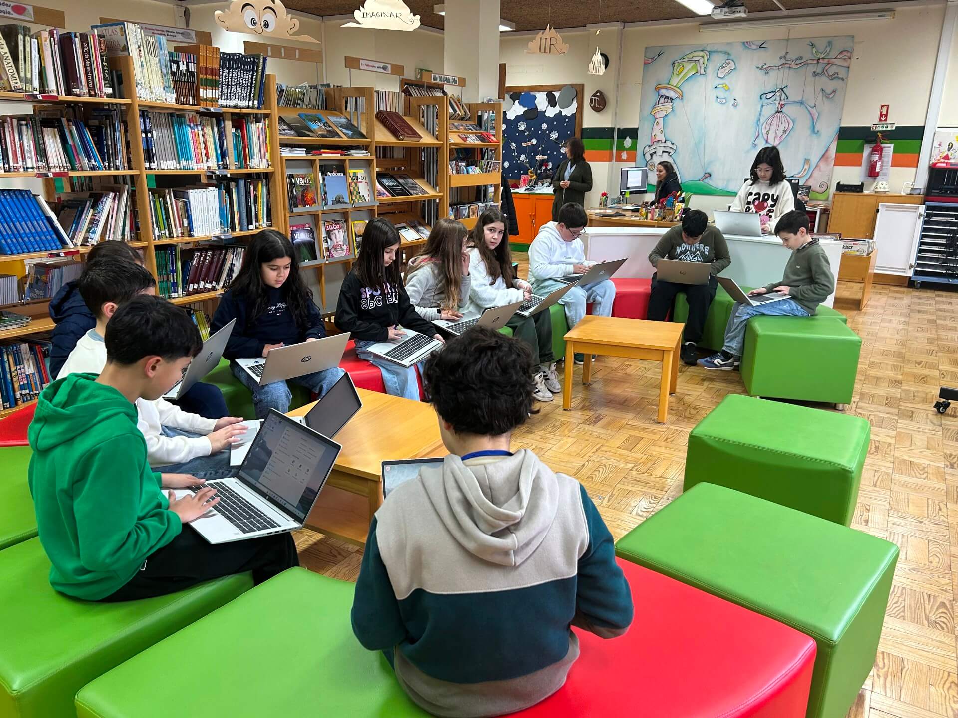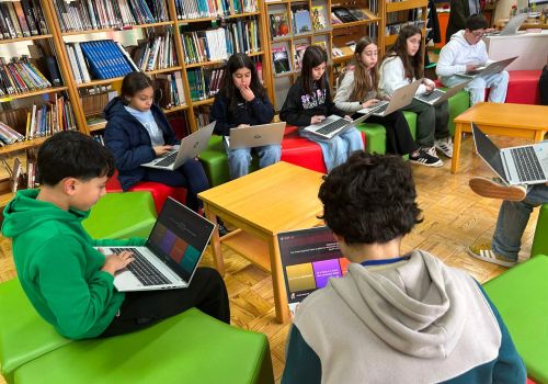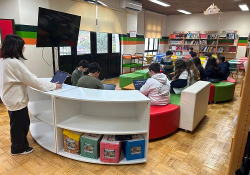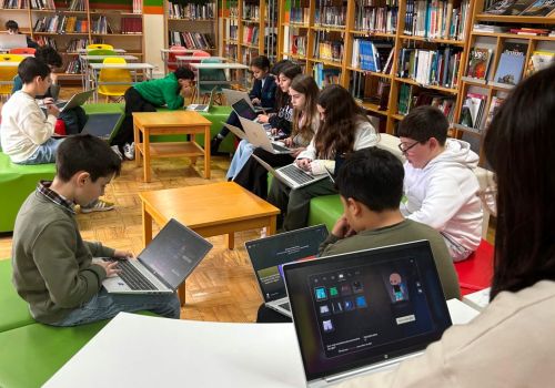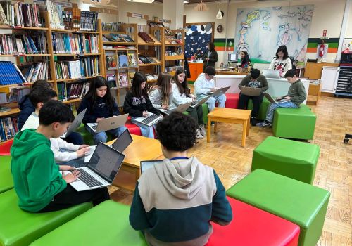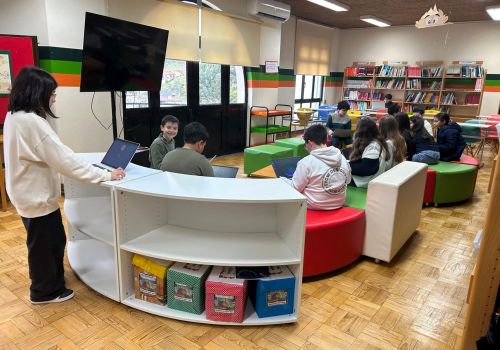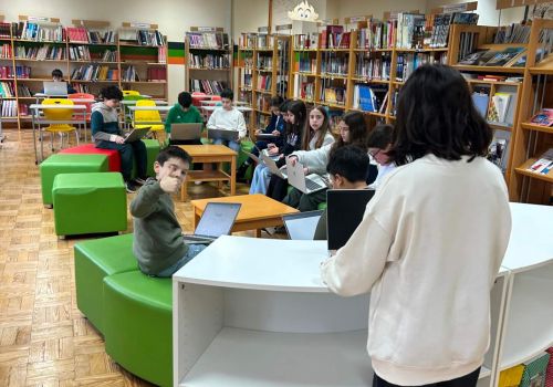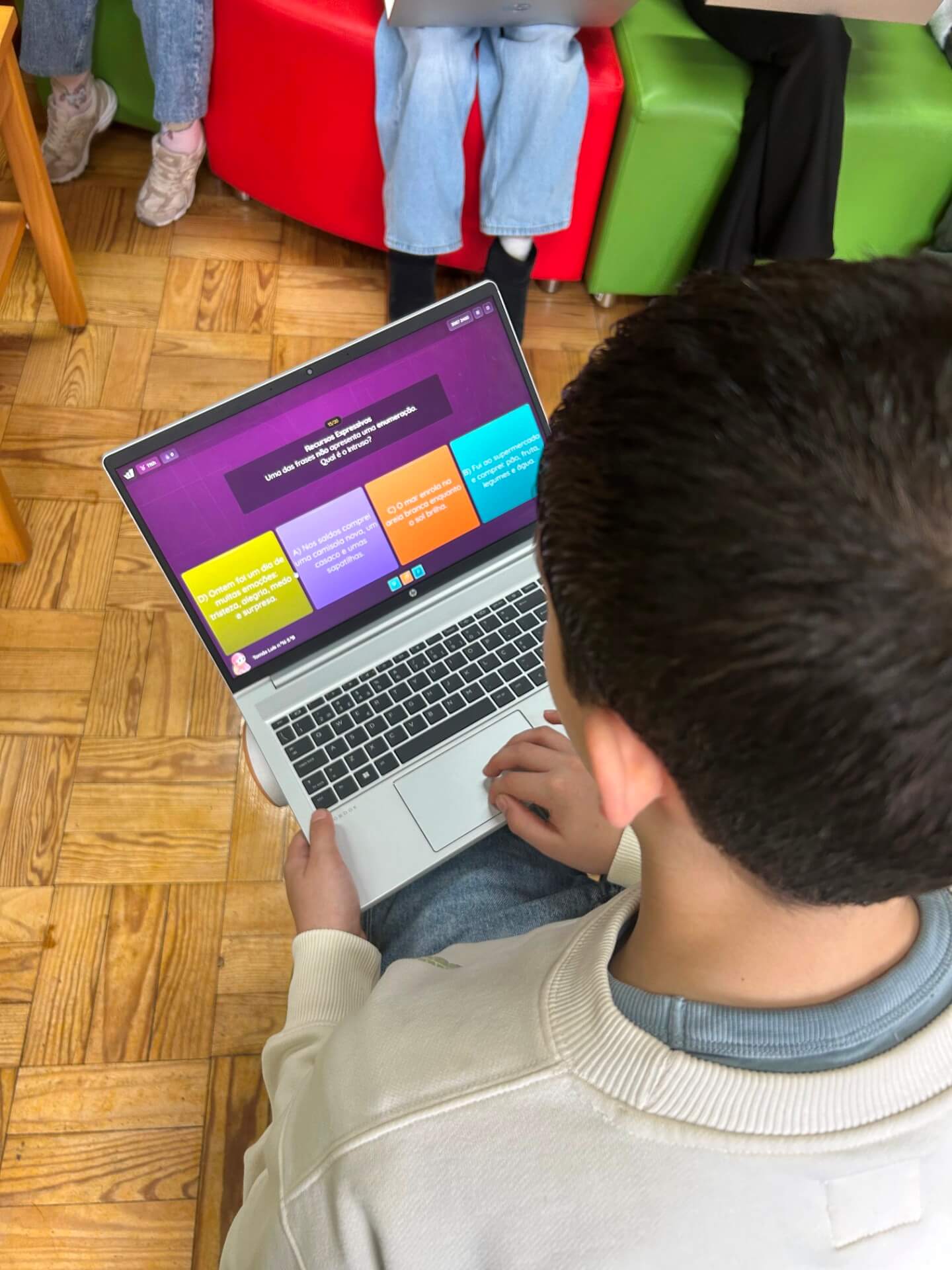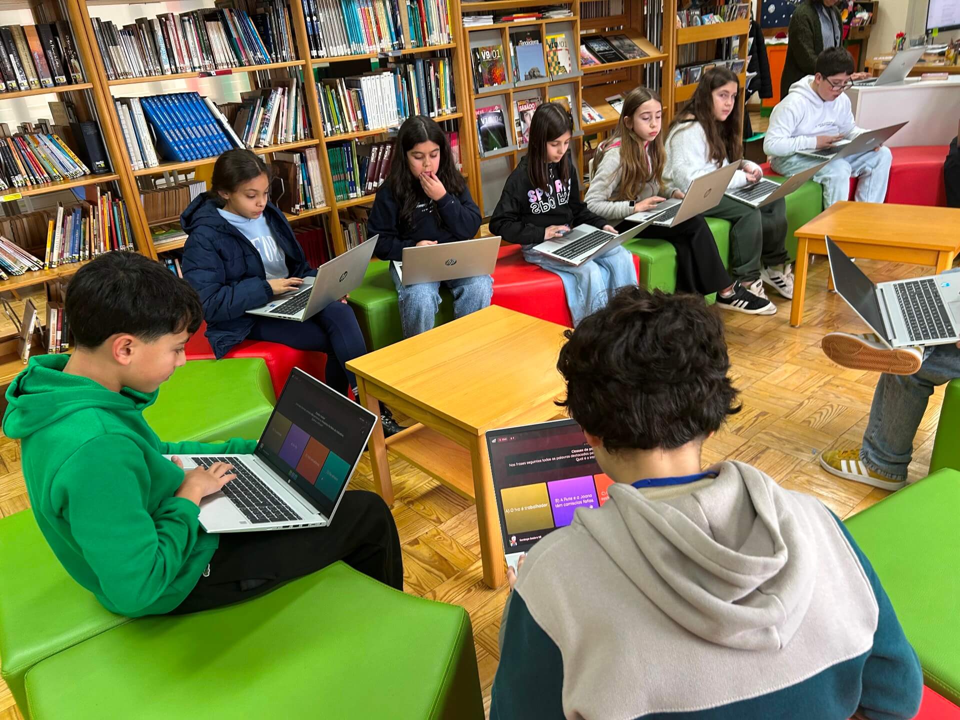 No 5.º ano, a sessão decorreu na Biblioteca Escolar, durante o tempo letivo da disciplina. Os alunos responderam a vinte questões centradas sobretudo no domínio da gramática, num ambiente que conciliou aprendizagem e componente lúdica.
