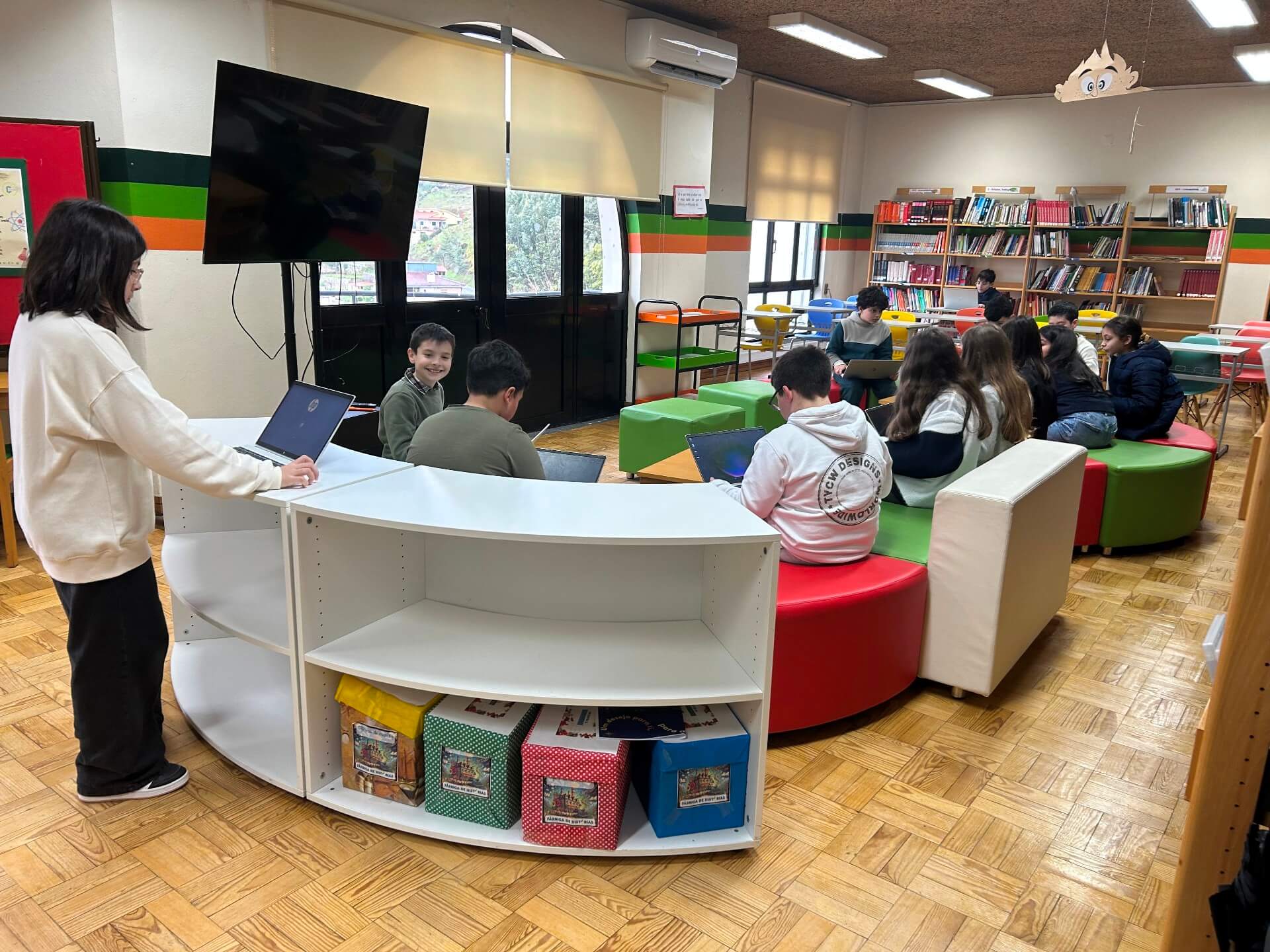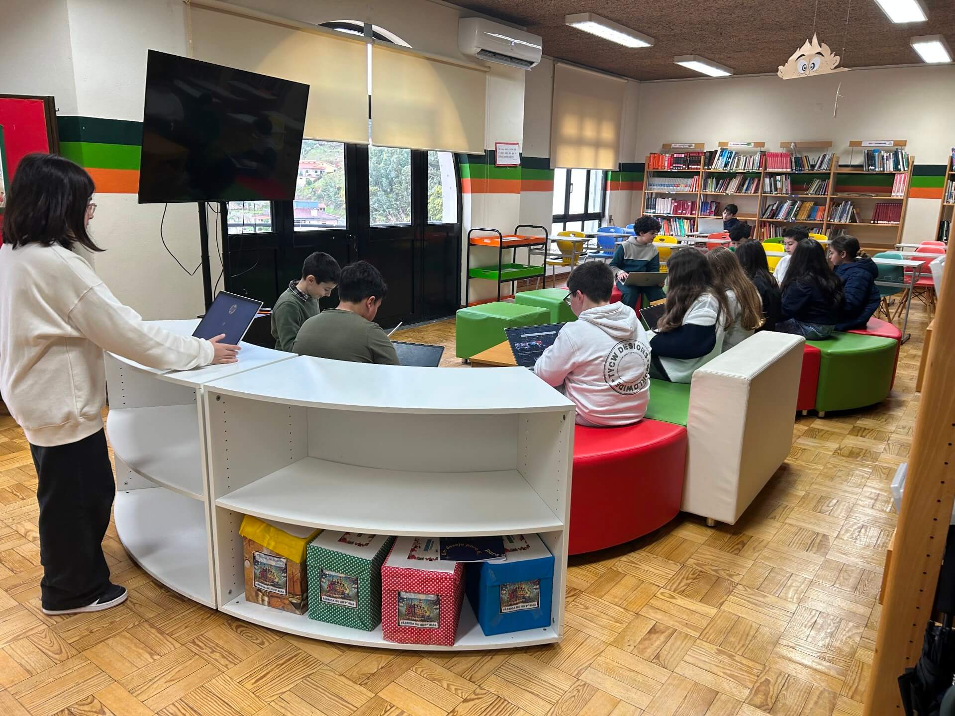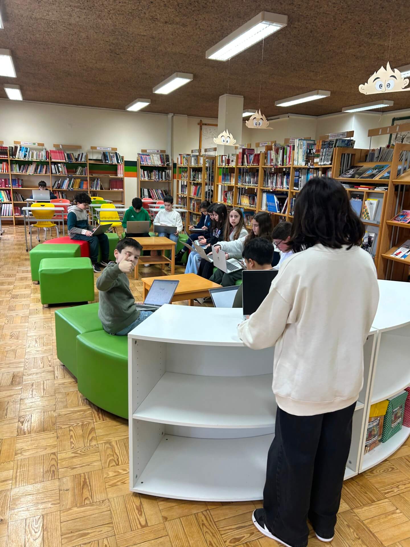 No 5.º ano, a sessão decorreu na Biblioteca Escolar, durante o tempo letivo da disciplina. Os alunos responderam a vinte questões centradas sobretudo no domínio da gramática, num ambiente que conciliou aprendizagem e componente lúdica.