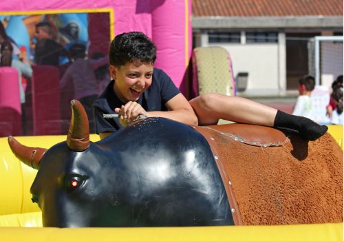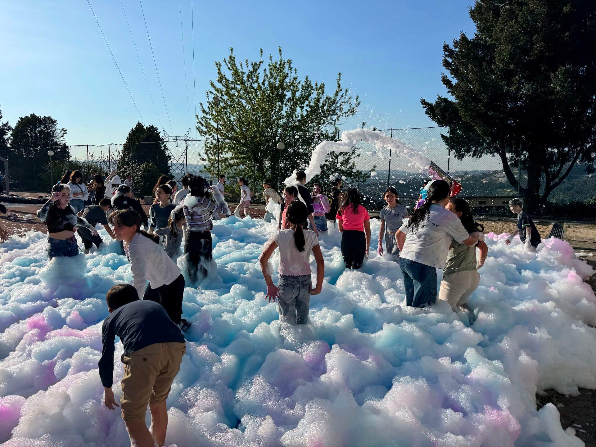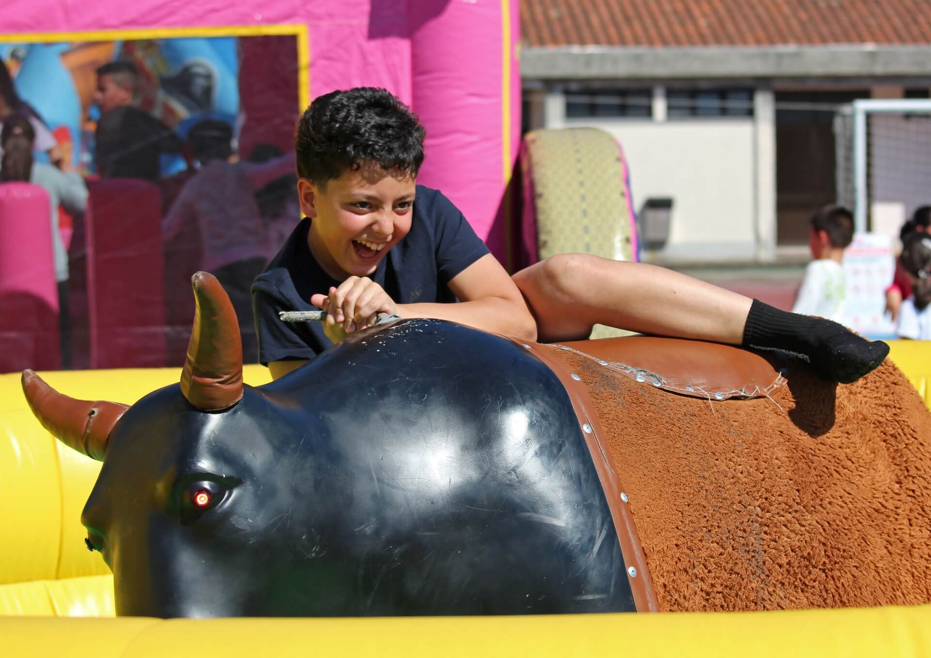 A animação fez-se sentir em toda a escola, com atividades como a parede de escalada, o touro mecânico, os insufláveis e a sempre aguardada festa da espuma, que proporcionaram momentos de grande entusiasmo e alegria.