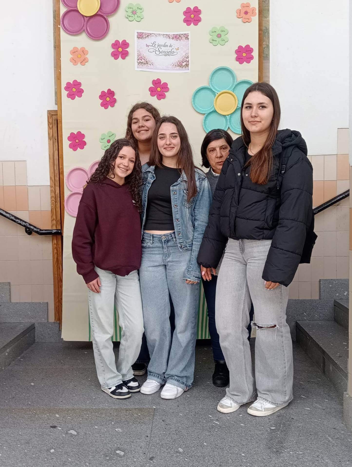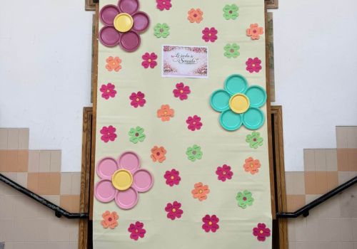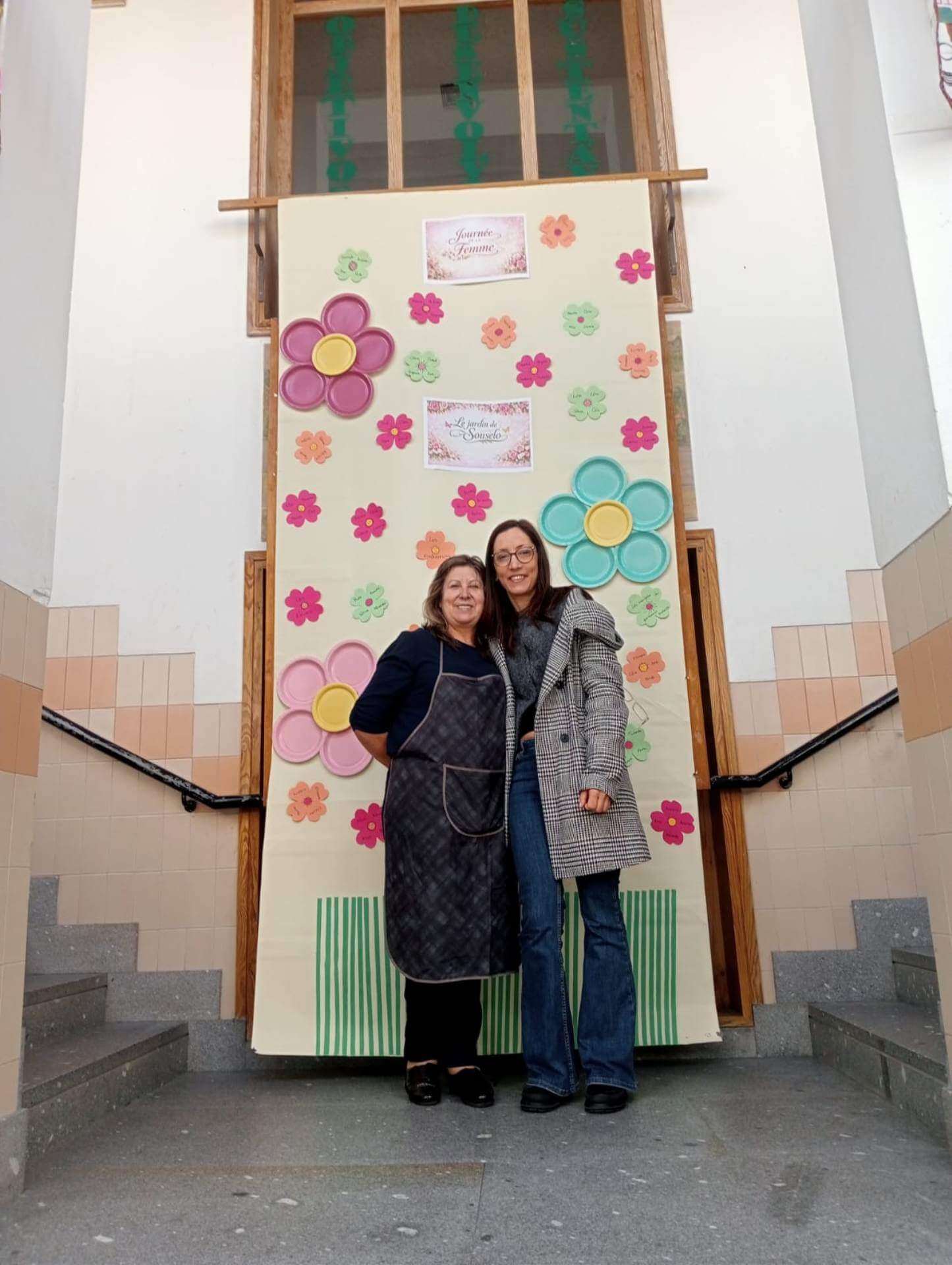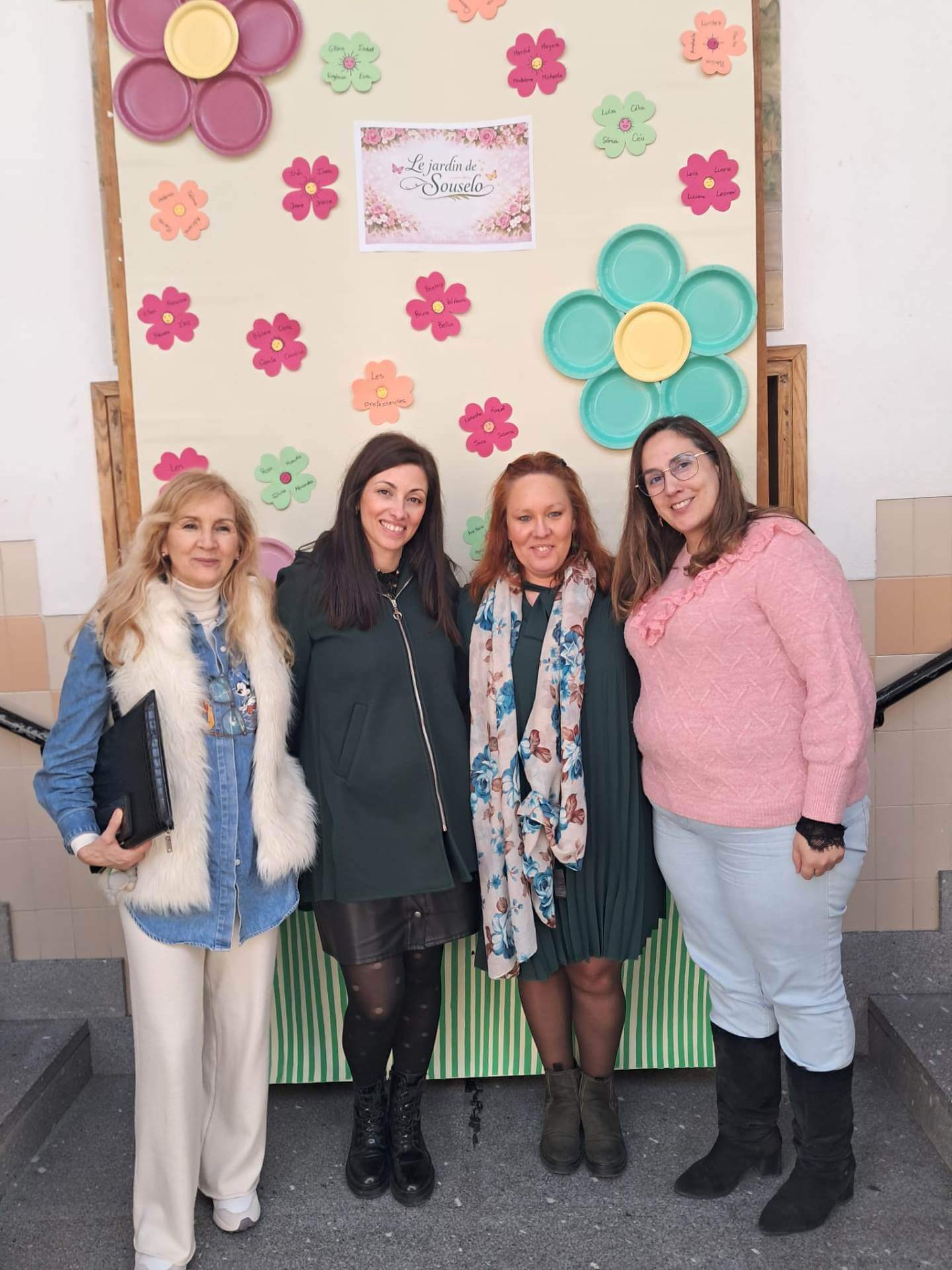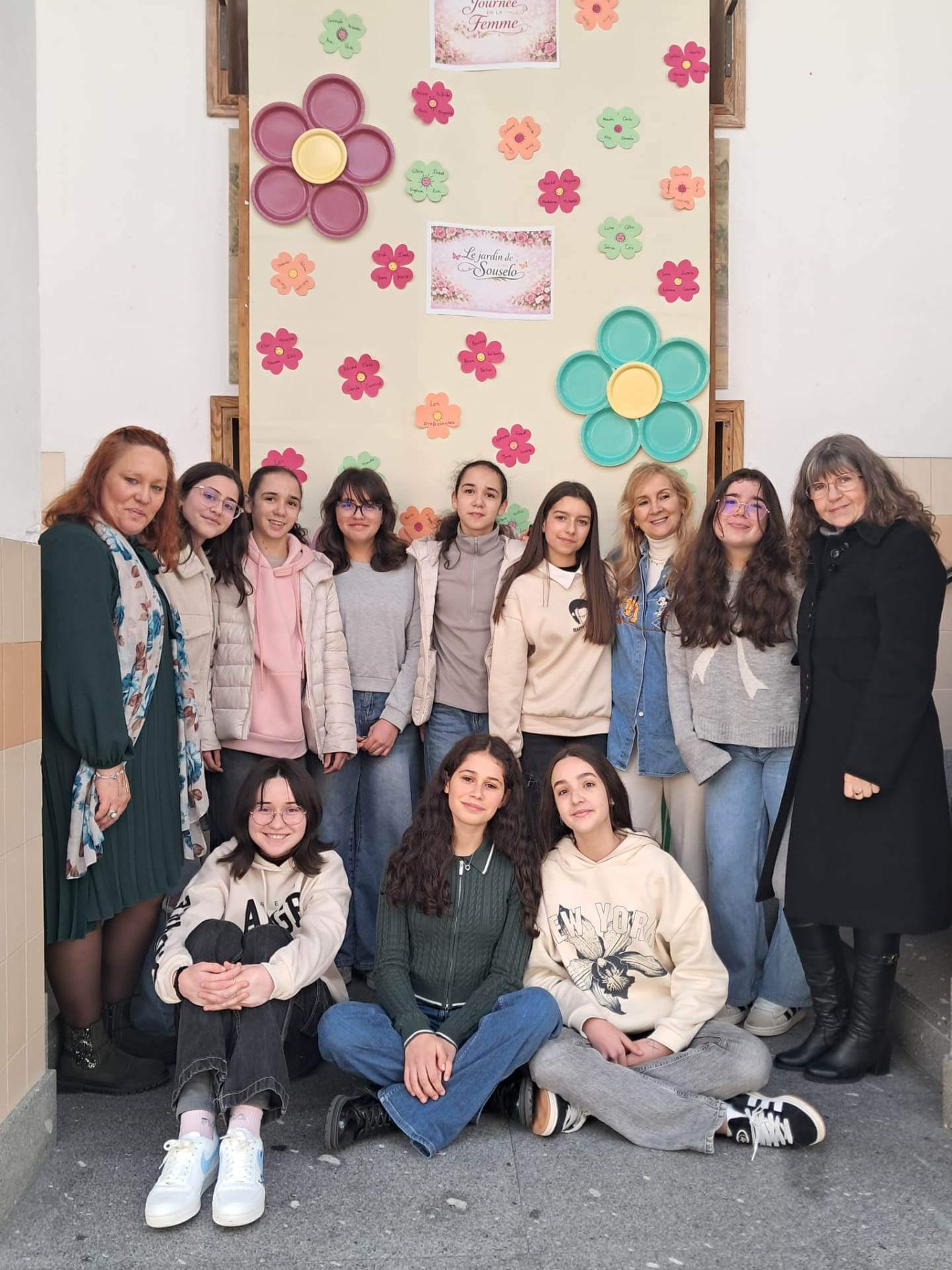 No átrio da escola foi preparado um cenário decorativo com flores coloridas e a expressão francesa “Le jardin de Souselo”, criando um espaço simbólico dedicado à celebração das mulheres. Este cenário, criado por todos as turmas do terceiro ciclo, permaneceu exposto durante vários dias, convidando alunas, professoras e assistentes a registarem o momento com fotografias em frente ao painel. 🌸