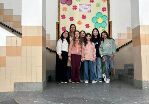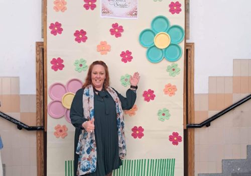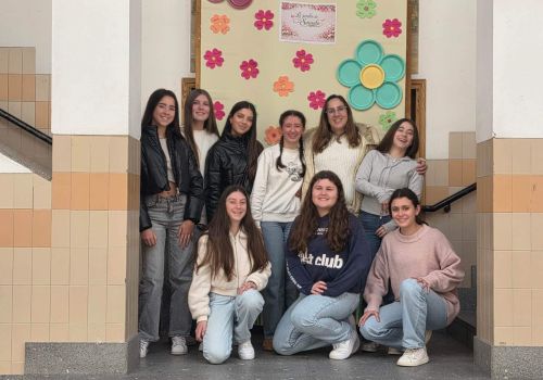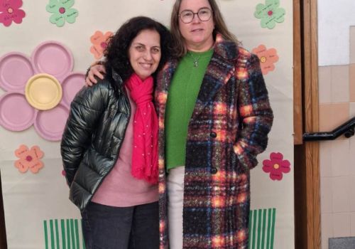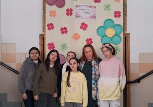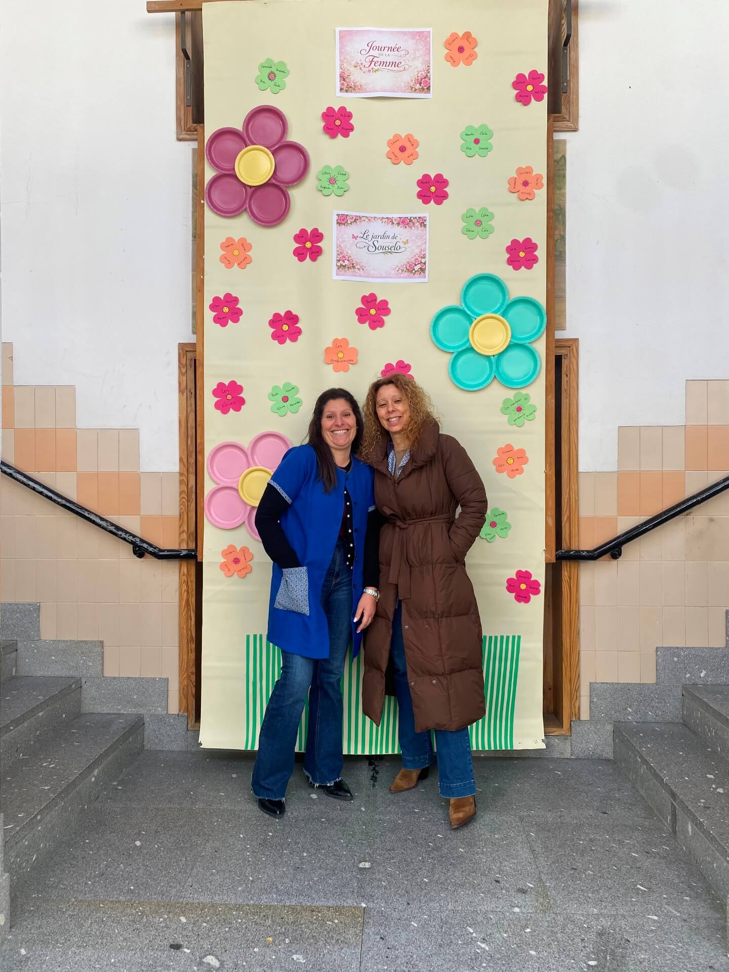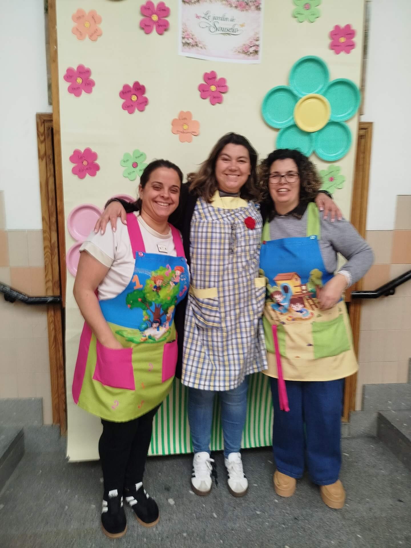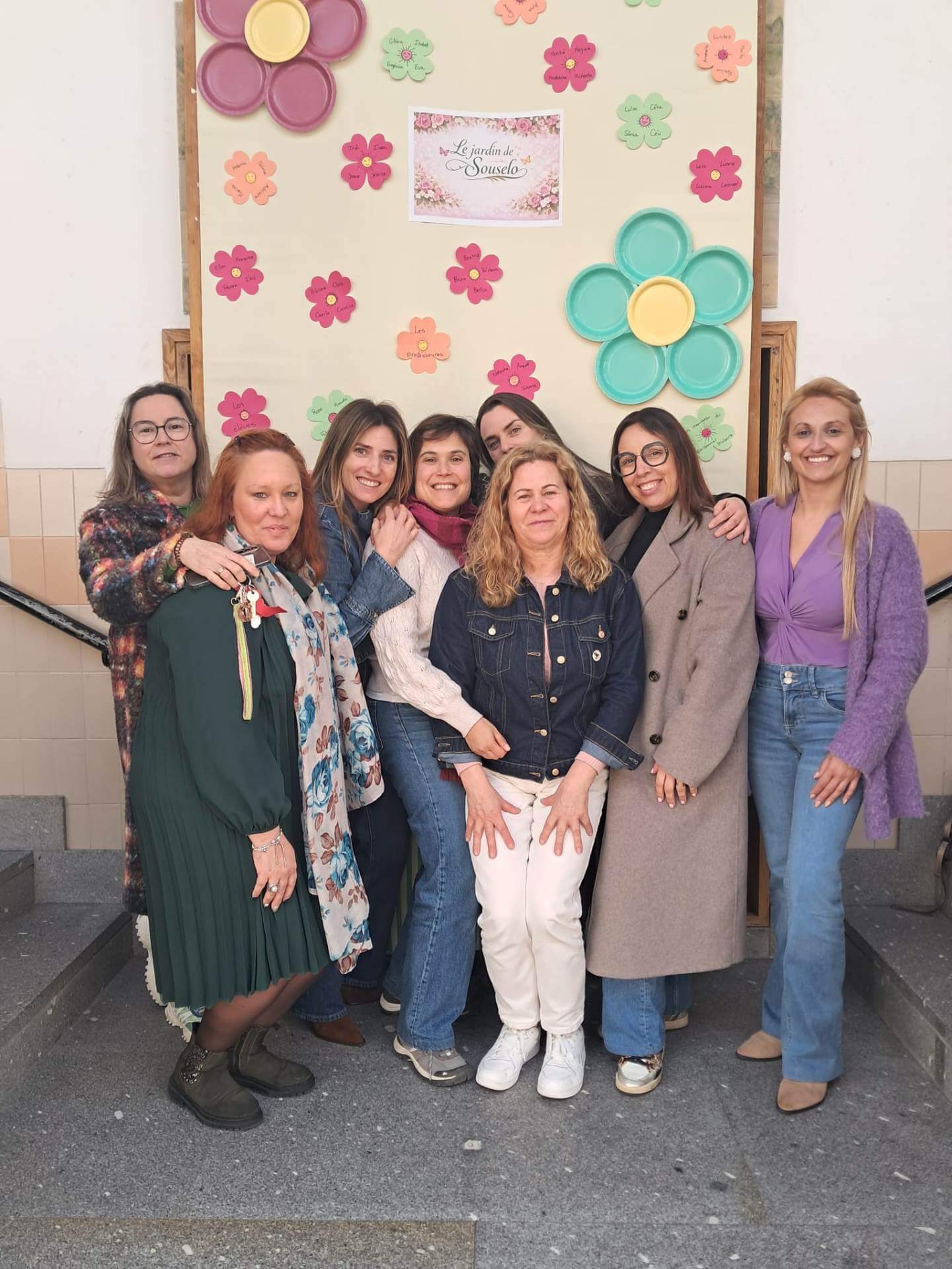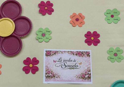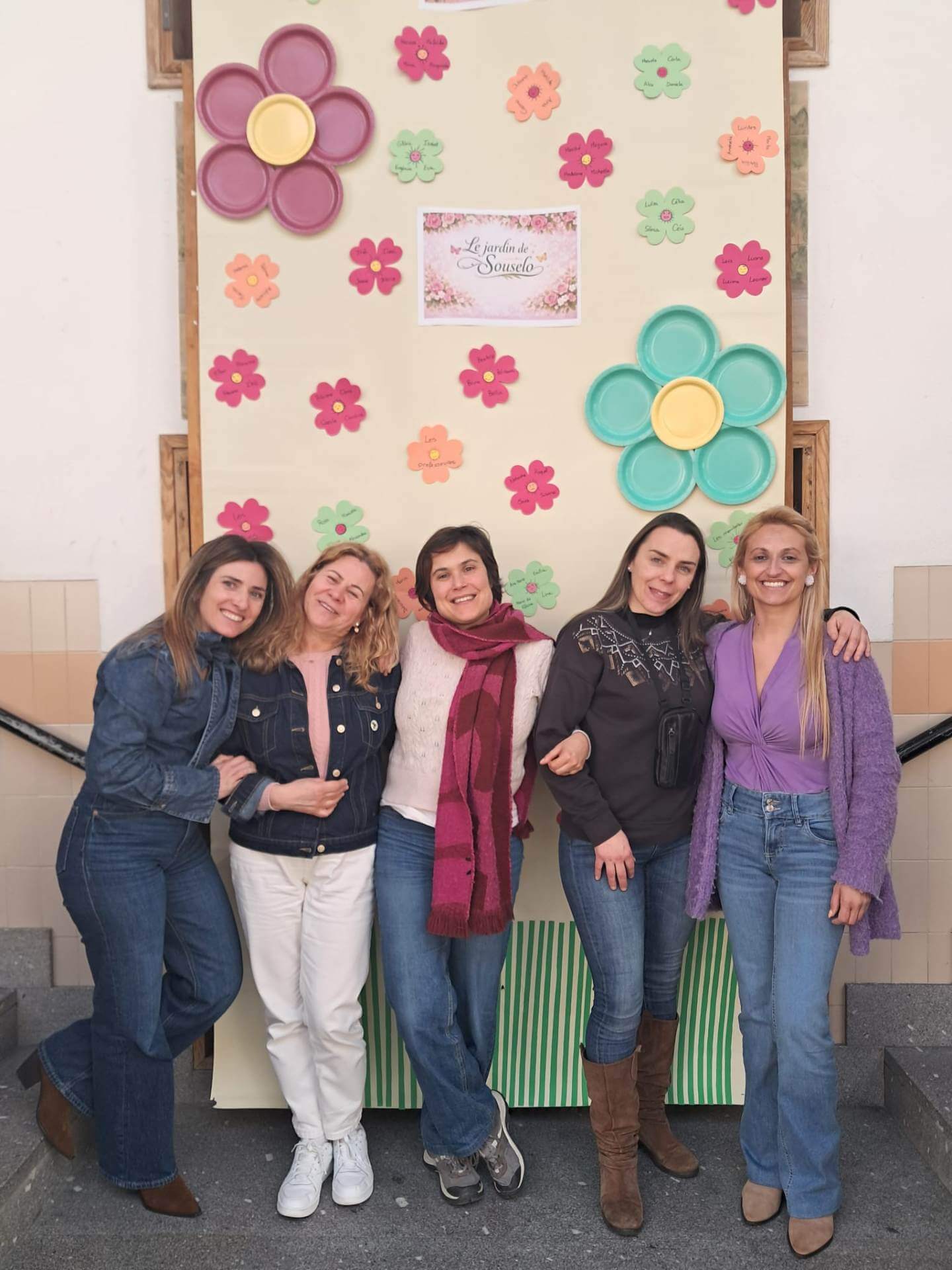No átrio da escola foi preparado um cenário decorativo com flores coloridas e a expressão francesa “Le jardin de Souselo”, criando um espaço simbólico dedicado à celebração das mulheres. Este cenário, criado por todos as turmas do terceiro ciclo, permaneceu exposto durante vários dias, convidando alunas, professoras e assistentes a registarem o momento com fotografias em frente ao painel. 🌸