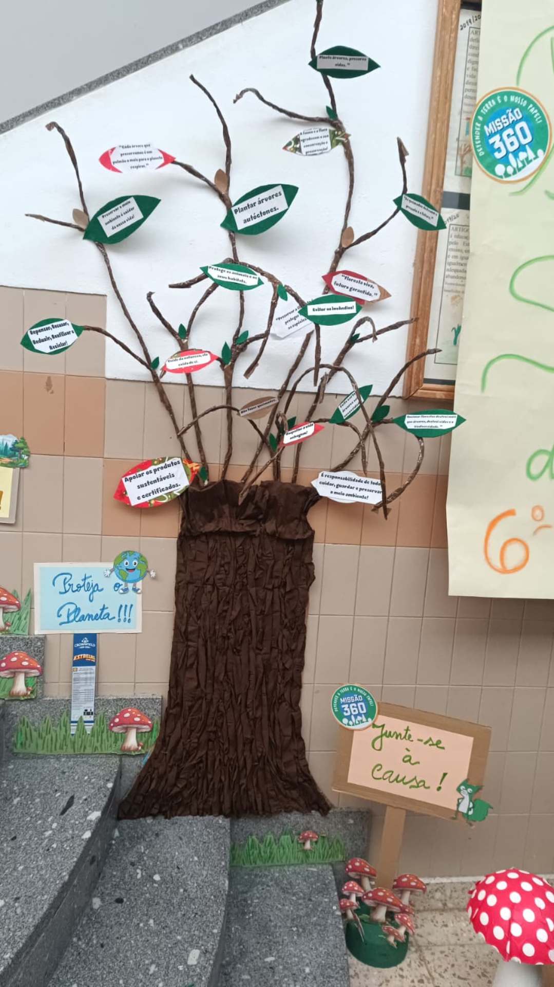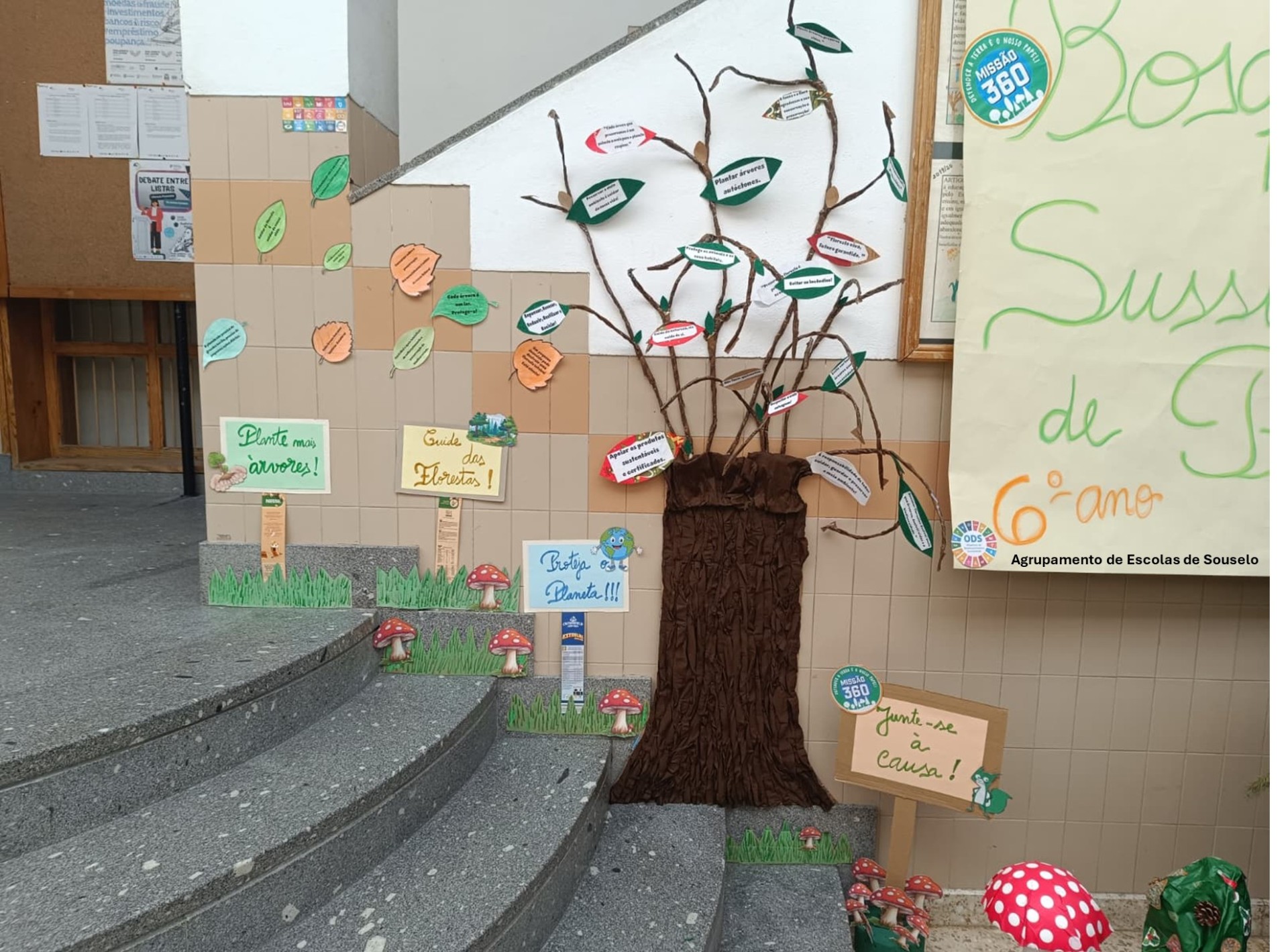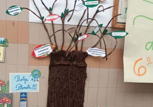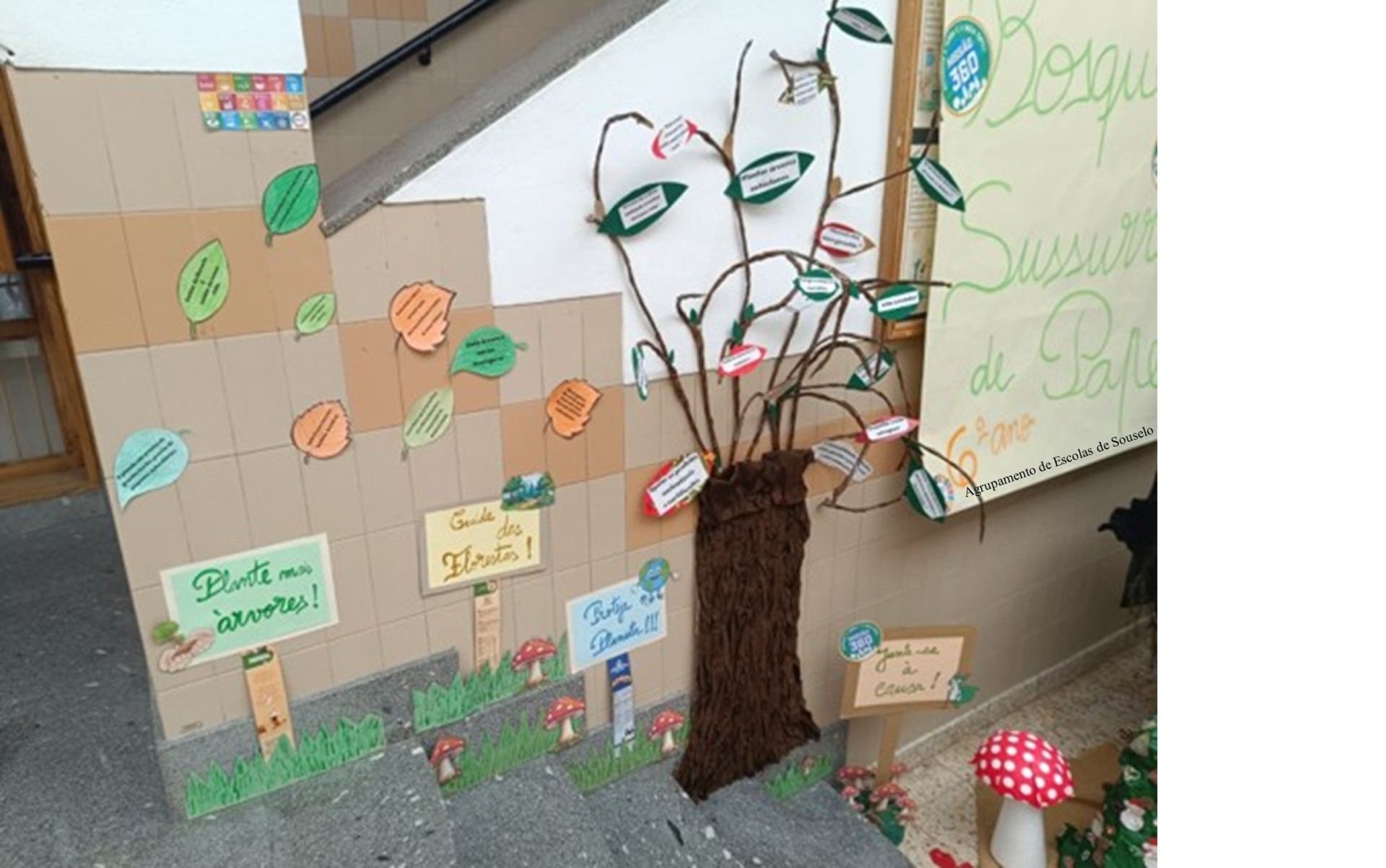 Em janeiro, após o regresso às aulas, no átrio da escola, os trabalhos das três turmas deram origem ao fantástico “Bosque dos Sussurros de Papel”, onde foram integradas mensagens de sensibilização ambiental e boas práticas para a proteção das florestas.